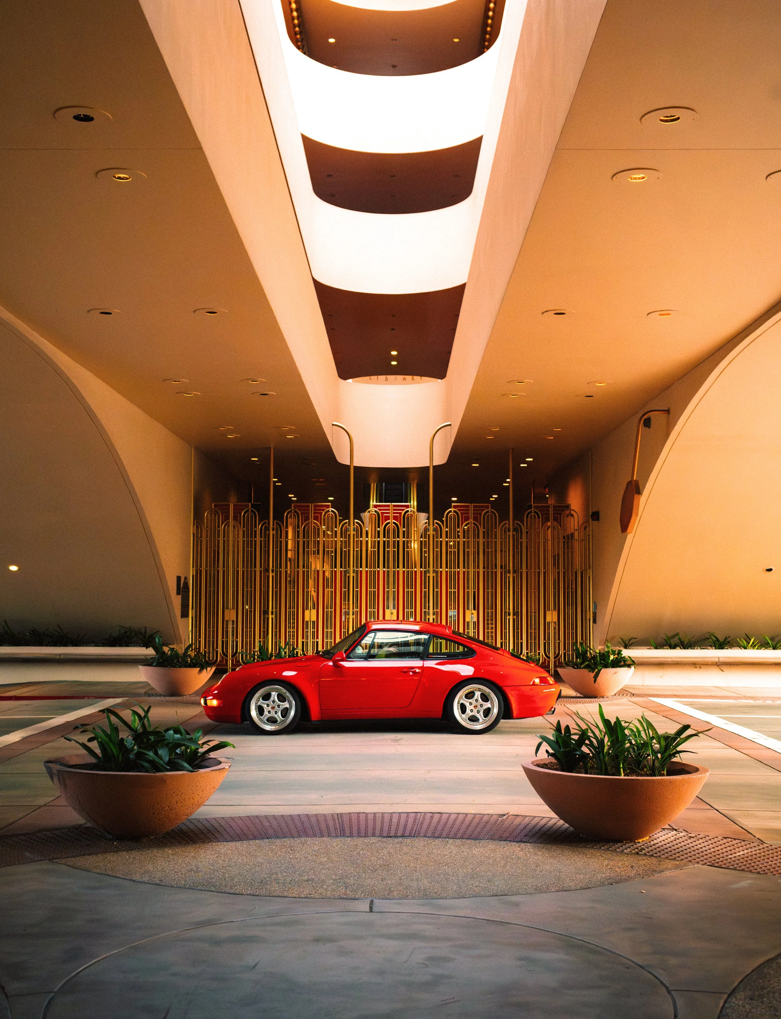 Pre-Stage is a monthly gathering for driving enthusiasts, with hyper-local coffee (roasted within 2 miles) and pastries served via the Red Whale Coffee truck, set by the lagoon of the stunning Frank Lloyd Wright-penned masterpiece, The Marin County Civic Center.
